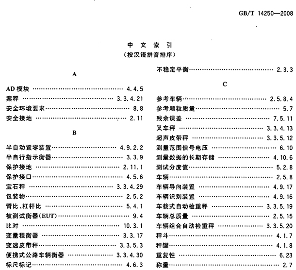 GB/T 14250- 2008 衡器術(shù)語 標準規(guī)范規(guī)定了衡器專業(yè)的術(shù)語及其定義,適用于衡器的標準編寫、書籍出版、文件編制、技術(shù)交流等技術(shù)方面。