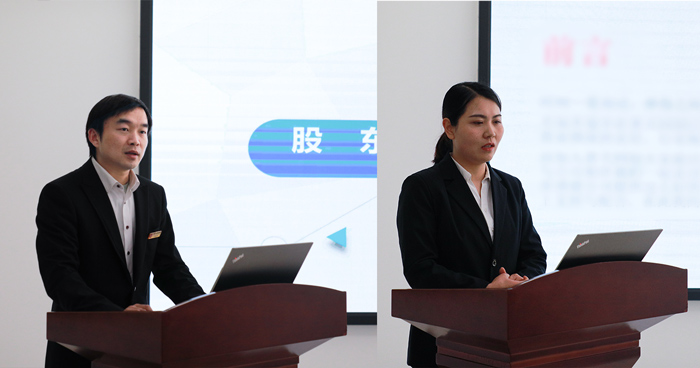 股東評選大會上,經(jīng)過層層評選推薦,宣傳部的周赫和業(yè)務(wù)部的曹鳳勤,以強烈的主人翁意識,認真勤奮的工作態(tài)度,求真務(wù)實的工作作風,在公司發(fā)展歷程中做出了杰出貢獻,保障公司良好運作和快速發(fā)展。同時,他們都曾根據(jù)公司需要擔任公司多部門崗位,主動學(xué)習(xí)能力強也是他們的一大優(yōu)點,合理運用時間來提升自己,更好的為公司服務(wù)。對此,公司將予以晉升股東為鼓勵,希望他們再接再厲?,F(xiàn)場氛圍熱烈,也極大激勵了全體員工的奮斗精神,以他們?yōu)槟繕耍娂姳憩F(xiàn)出斗志昂揚的態(tài)度,也要努力成為公司股東的一份子。“以老板的心態(tài)打工,你早晚會成為公司的股東”這句話不是我們貼在會議室墻上的一句標簽,而是普天同創(chuàng)為全體員工搭建的實實在在的企業(yè)晉升通道。