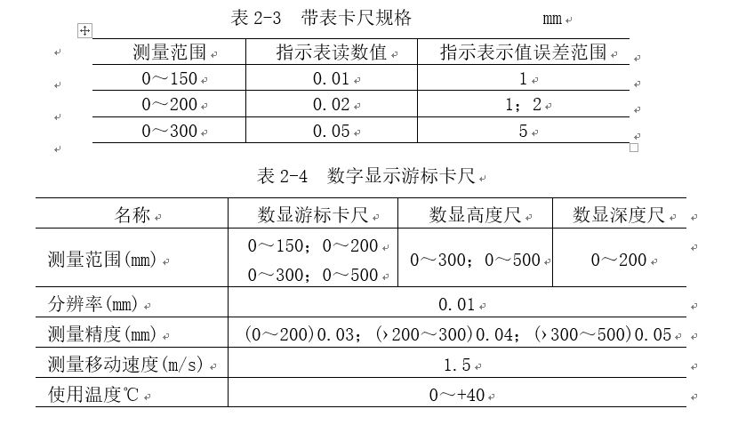帶表卡尺的規(guī)格見(jiàn)表2-3。數(shù)字顯示游標(biāo)卡尺的規(guī)格見(jiàn)表2-4。